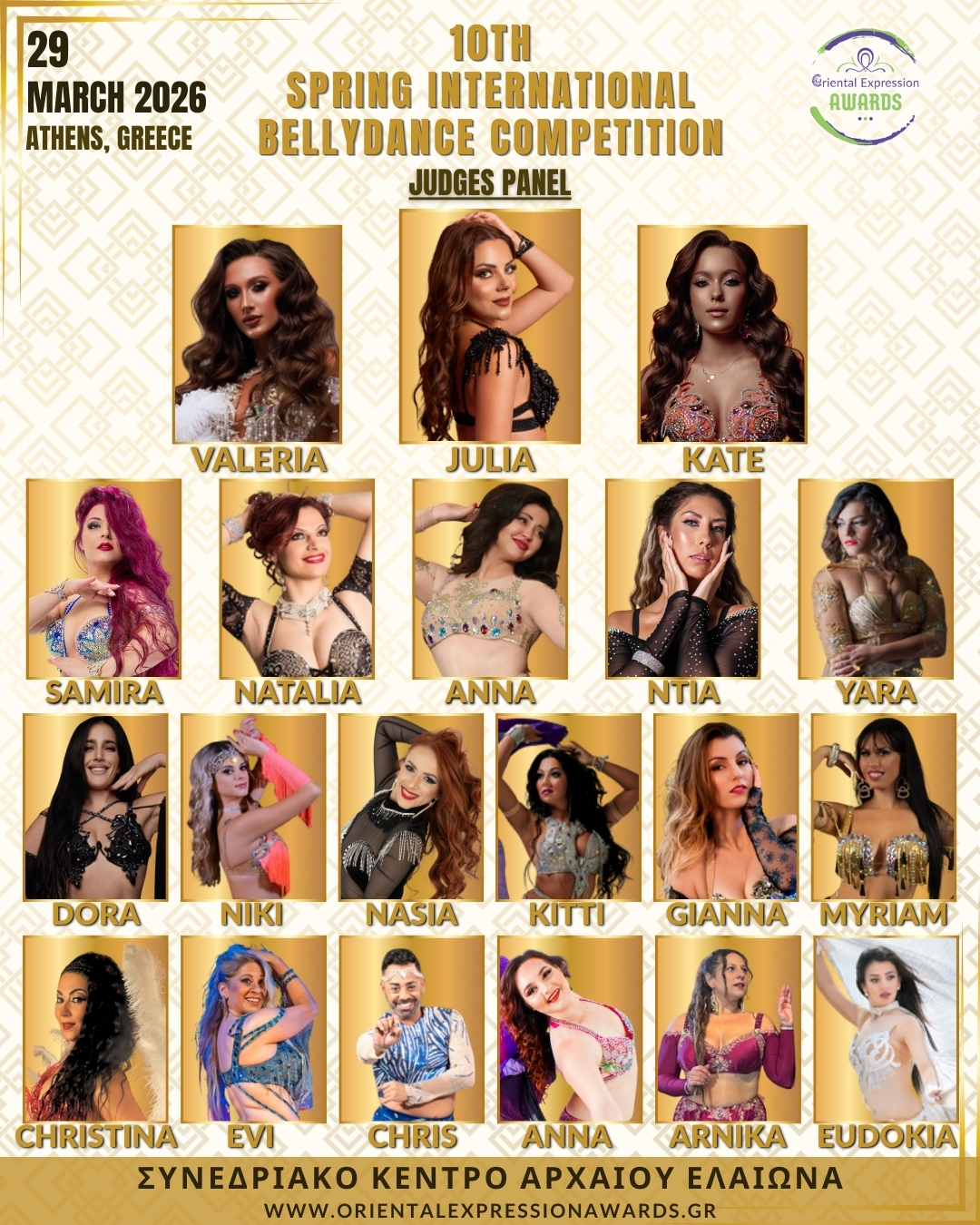 On Sunday, 29 March 2026, at 10:00, at the Conference Center of the Ancient Olive Grove University Campus, the Oriental Expression Awards will be hosting, for the 10th consecutive year, the Grand International Bellydance Competition.
